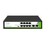 8-port 10/100Mbps unmanaged switch with 2 uplink ports, VLAN/Normal/Extend modes, and real-time status monitoring.
