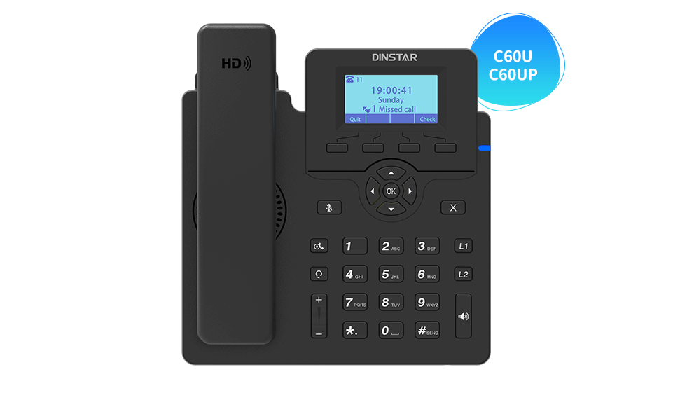 Dinstar C60UP IP Phone is a professional VoIP desk phone designed for smooth and reliable business communication. It offers HD voice quality, easy setup, and SIP compatibility for enterprise use.