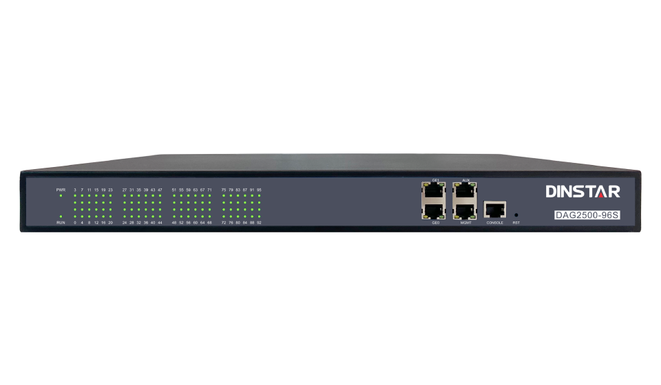 Dinstar DAG2500-48S is a high-density analog VoIP gateway with 48 ports, designed for large-scale enterprise communication and PSTN to VoIP integration with stable performance.