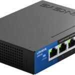 The Linksys LGS105-Retail is a 5-port Gigabit unmanaged switch with 2-pin round power input, offering reliable, high-speed wired connectivity for small offices, retail shops, and home networks.