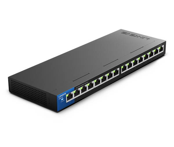 Simplify your network setup with the Linksys LGS116 16-Port Gigabit Unmanaged Switch. This switch provides 16 high-speed Gigabit Ethernet ports, ensuring stable and efficient connections for computers, printers, IP cameras, and other network devices. Its unmanaged, plug-and-play design eliminates the need for configuration, making installation quick and hassle-free. Designed for professional environments, the LGS116 features a 2-pin round power connection and a durable build, delivering dependable performance for small to medium-sized offices that require reliable wired networking.